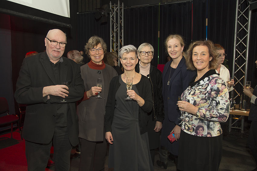 JURYN Årets MediaAmazon 2017 Cecilia Zadig, Jeanette Gustafsdotter, Kerstin Brunnberg, Christina Jutterström, Robert Rosén med Pristagare Anna Lindberg